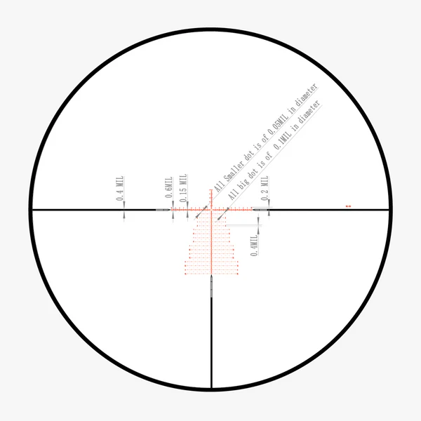 - 0.5 MRAD indicators and bold sub-tensions on every MIL for quick reference.