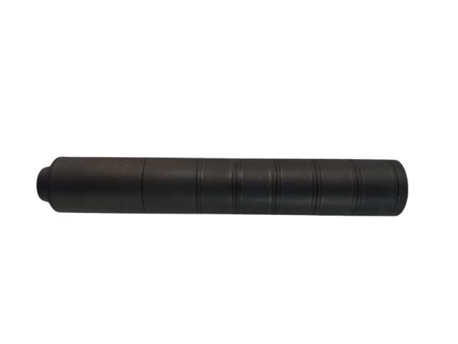 This pistol-suppressor uses a Nielson device that allows it to function on modern pistol barrels witch tilt to allow a bullet to seat in it’s chamber.