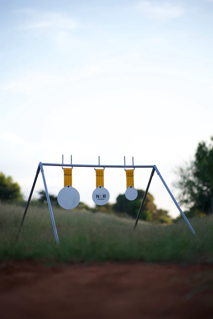 Below, you’ll observe that these gongs were fired upon using a 300 Win Mag Rifle from a distance of 100 meters, causing almost no harm to the steel but only impacting the paintwork.