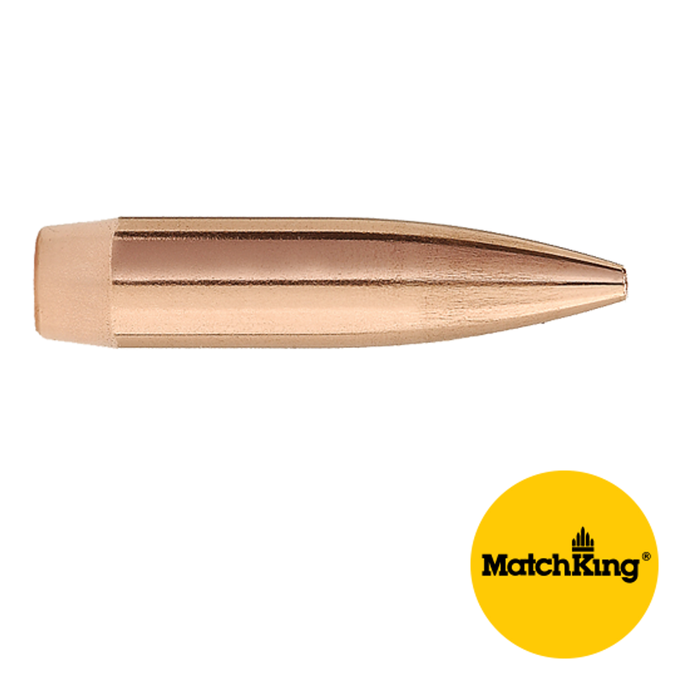 Designed for Service Rifle competition in the M16A2/AR-15A2, our 22 caliber bullets have set an incredible number of new national records. The 77 grain #9377 MatchKing® allows seating to an OAL that permits cartridges to be loaded into M16/AR15 magazines. While they are recognized around the world for record-setting accuracy, MatchKing® and Tipped MatchKing® bullets are not recommended for most hunting applications. Although MatchKing® and Tipped MatchKing® bullets are commonly used for varmint hunting, their design will not provide the same reliable explosive expansion at equivalent velocities in varmints compared to their lightly jacketed Hornet, Blitz or Varminter counterparts. The #9377 bullet is available in a cannelured version in box sizes of 500 (#9377G) or 50 (#9377GT). This bullet requires a barrel twist rate of 1×8” or faster.